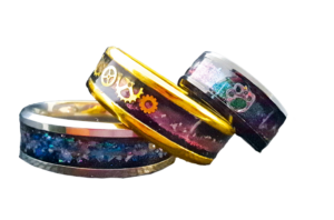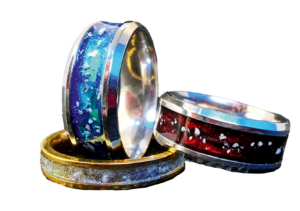 Een S925 zilveren ring is bespreekbaar, echter staat dit voor mij nog in de kinderschoenen omdat ik het dan zelf zou moeten maken. Eventueel kan ik je ook doorsturen zodat je de zilveren basis elders kunt laten maken, waarna ik de ring vul met jouw gewenste kleurenpracht en het as of haar van jouw dierbare.